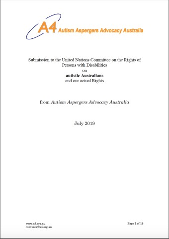 Autism Aspergers Advocacy Australia (A4) submitted a report on Australia's response to the CRPD in relation to the rights of autistic Australians. The key points A4 made are: